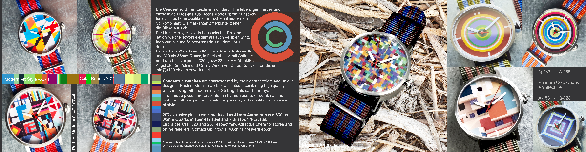CONCENTRIC-WATCH COM - A SWISS INNOVATION The first serial product individually designed worldwide*. With the help of our software random algorithm and a partial collection of AI made designs What has long been established in art and handicrafts could soon subwave a100 is taking on a pioneering role and started producing several Based on the concept of Swiss architect Daniel Schulthess, each watch is a small, The watches are characterized by high-quality components and will be released *There are unique industrial products in series in print products like T-Shirts or within the characteristics of (recycled) materials, - like the FREITAG bags - but a web search finds no other product comparable to our unique watch. Of course, artisans and watchmakers always made smaller series of unique pieces - but not 500 or several 1000 in a factory. |